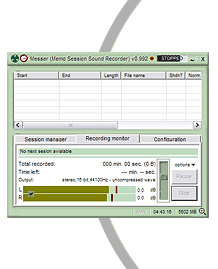 Q1: Can you add feature X / fix problem Y / help me with Z? A: Well for first two question answer is: no. Development IS stopped/suspended for now and I don't really know if and when I'll continue. Anyway thank you all for questions, suggestions and all other e-mails I received so far (I'm sorry I couldn't answer some of them because of lack of time...). So please don't send any new suggestions, but don't hesitate to ask for some support - if you can't find solution for you problem in this FAQ and if I only find the time, I'll try to help. [top] Q2: Is the source code of Messer available? A: No, and it won't be. Believe me - you wouldn't want to tweak this mess inside ;-) At first I wanted some simple wav recorder + scheduler, then mp3 recording was added as kind of "proof of concept" (that mp3-on-the-fly is possible, why shouldn't it be?), then some more useful features came out... And adding them became a nightmare without some flexible architecture existing at first place. As I'm still getting requests for source code: please don't ask. I won't be answering e-mails with requests for Messer's source code. [top] Q3: I was recording something with Messer, but file contains silence (or just a little noise). A: It's probably because you didn't choose recording source properly and/or didn't adjust its level. Choose "Run" command from system "Start" menu and enter: sndvol32 -R. It'll bring Volume Control application you probably already know, but with recording controls instead of default playback ones, so now you can choose source and recording volume. Adjust volume so it is high but never reaches full level (look at Messer's level meter - it should never reach 0dB). Too low volume will give you noisy recording - too high will lead to unpleasant distortions ("clipping"). Also some Windows XP users reported that they're getting nothing but silence although everything seems to be set up properly. I really don't know why it happens. Messer was developed under Windows 98 and uses older multimedia programming interfaces (used before DirectX standard was introduced). Basically older interfaces should work with 2000/XP systems (well, they do for me) but sometimes they don't :( Sorry. [top] Q4: Windows cannot shut down or reboot when Messer is running. A: Yes it's known problem, unfortunately not fixed. You'll probably have to close it manually. [top] Q5: Can Messer record from tapes/lp/radio tuner/etc... ? A: Sure. Anything you can hook up your soundcard can be recorded. See Q3 if you're not sure how to set up your system to record from the source you need. [top] Q6: Can Messer record streaming audio? A: That depends on what you really mean by that. On most soundcards (virtually all modern ones) it can sample anything that your computer is playing including the sound coming from streaming audio players. Simply choose special "loopback" recording source in system sound mixer (it's usually labeled "WAV", "stereo mix", "direct sound", "what you hear", etc). But this way you'll loose some quality because the sound is converted from digital to analog and then back to digital and you'll change the file format (to WAV or MP3). While the first has usually small impact on sound quality, transcoding to MP3 can be more harmful. On he other hand it cannot record without digital->analog->digital step (as for example Total Recorded do) and it cannot "grab" stream directly, without transcoding to other format (like StreamRipper, StreamboxVCR, ASFRecorder, Oddsock's SaveCast and similar - use Google if you want to find them). [top] Q7: Is on-the-fly mp3 compression possible with scheduler? A: Yes it is. When choosing destination file for your scheduled session, give it ".mp3" extensions. Click "more" and you'll see that instead of normalisation options there are controls that allow to choose compression parameters. [top] Q8: Lame Enc has lots of parameters, tweaked high quality modes ("alt-presets") etc. Why can't I use it with Messer? A: Not all switches supported by executable version of Lame encoder can be accessed from DLL. "Alt-presets" modes are available in some tweaked versions of lame_enc.dll, but aren't supported as well (simply weren't there when I've been writing Messer). [top] Q9: What compressor was used to pack Messer's executable? Q10: Does Messer work with Windows 2000/XP? A: Yes, it works for me, but see also answer to Q3. [top] Q11: The mp3 compression options are grayed out. Why can't I choose it? A: To record directly into mp3 files you'll need lame_enc.dll library (Blade encode dll works as well, but is not recommended). Simply put it into X:\WINDOWS\System\ directory (where "X" is the letter of drive where your system is installed) or into directory where Messer is installed (probably X:\Program Files\Messer\). [top] Q12: Can Messer be used under MacOS, Linux, (insert you system here). A: Messer is a Microsoft Windows application, but for linux users it seems to be working fine under Wine. [top] Q13: How can I record "by hand"? Can't find "record" button. A: Turn off the scheduler first (click little red clock on the top). [top] Q14: How can I turn on the level meters? A: There's a little checkbox between the meters, on left side. [top] Q15: Does Messer allow a user to record for an unlimited amount of time, up to the hard drive's capacity? A: There are some limitations. First: WAV format is limited to 2GB and although Messer will create bigger file it'll have broken header and will be unreadable for most of the programs (you may be able to recover the data using audio editors that can read "raw" PCM format). Second: FAT32 filesize is limited to 4GB, system won't allow you to create larger one. So the only way to record without limits is: MP3 on NTFS filesystem.[top] Q16: What are the minimum CPU requirements for on-the-fly mp3 recording? A: Messer was originally developed on PII 350MHz, so anything better will do the job. A slightly slower machine will probably handle the job as well, beca